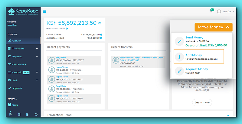 Thank you for being a valued Kopo Kopo customer! We hope you enjoy the new ‘Add Money’ feature — let us know what you like, or what you would like us to add.